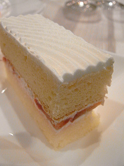 それからケーキ入刀およびファーストバイトの後の、ウェディングケーキ。