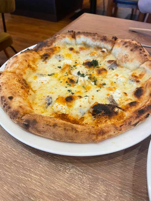 冒頭はアッチューゲでサラダバーセットで2,450円。アンチョビ/モッツァレラ/MIXチーズ・ポッタルガ/マスカルポーネ/リコッタの組み合わせです。生地がとにかく美味しいのがよかったです。トッピングも勿論。