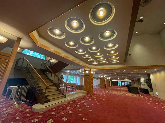 さてこちらのホテルは千里中央駅からすぐ。その前に千里中央駅が興味深すぎました。ホームと構内の店舗の関係が不思議だし、駅併設の商業施設が完全に廃墟になっていましたし、駅の上の方の商業施設のデザインもレトロっぽくてとても素敵でした。こちらは明日雨があがってからん散策とし、まずはホテルを楽しみます。
