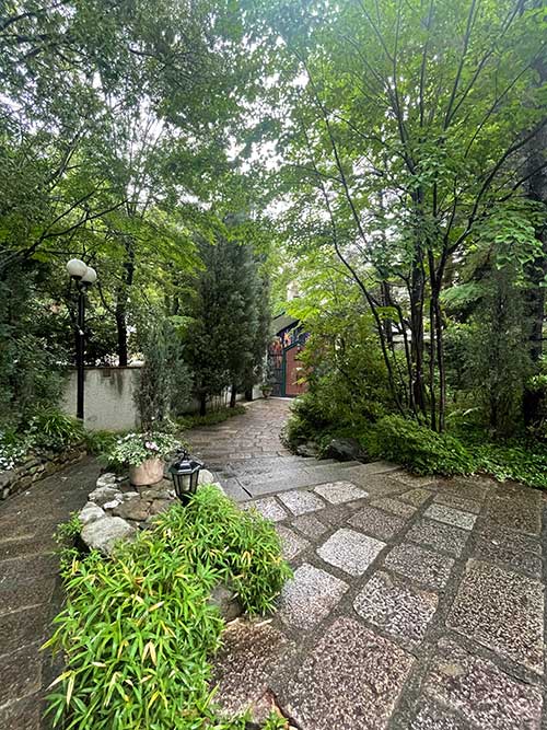 ホテルに宿泊すると、夜の静かな中の散策も可能なのが密かに楽しいです。さくららうんじも灯りが一部だけになっていて、非日常の雰囲気。