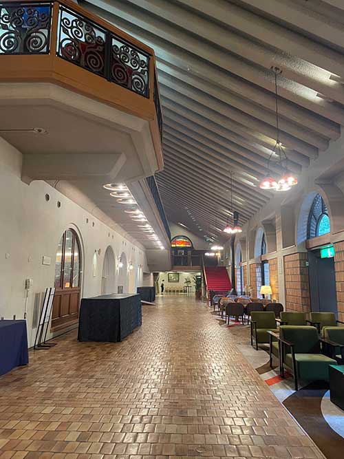 チャペルは明日の散策に。建物に戻って風除室みたいな場所。
