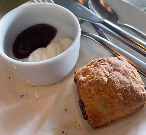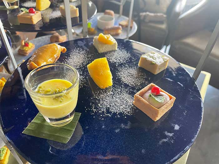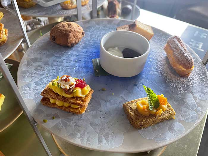 甘納豆スコーン、マンゴークリームショートブレッド、パイナップルパウンドケーキ、とうもろこしのミルフィール、マンゴーココナッツエクレア、季節のジャムとマスカルポーネクリーム。