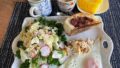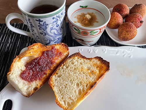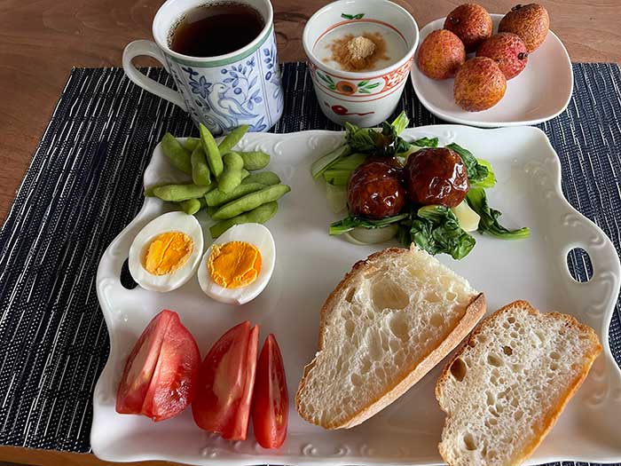 とはいえ、いつものトマトやゆで卵、枝豆など全体的にはバラバラです。パンはこの後トーストし、ジャムを塗ったり塗らなかったり。