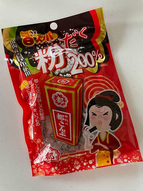 こちらは以前夫が「私が好きそう」ということで買ってきてくれた、都こんぶの旨スッパ粉だく200%。