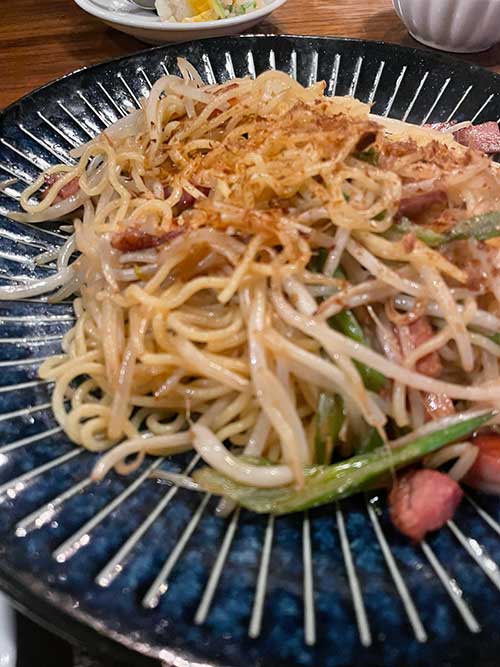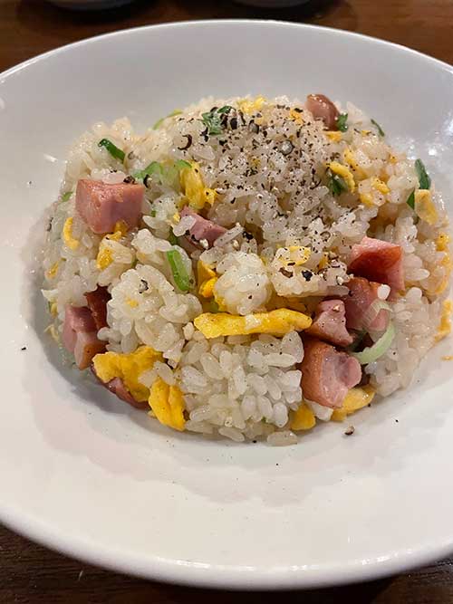 燻製の具ゴロゴロチャーハンと焼きそばです。