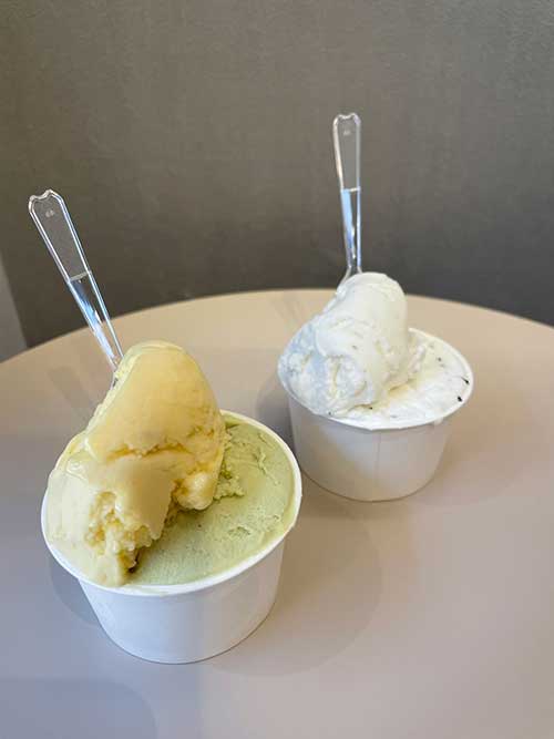 私はピスタチオと南高梅。夫は、実山椒和三盆ミルクとストラッチャテッラ(イタリア版のチョコチップ)。ちょっと一味違うようなフレーバーが色々あって、選ぶのも楽しいです。もちろん味も美味しい。