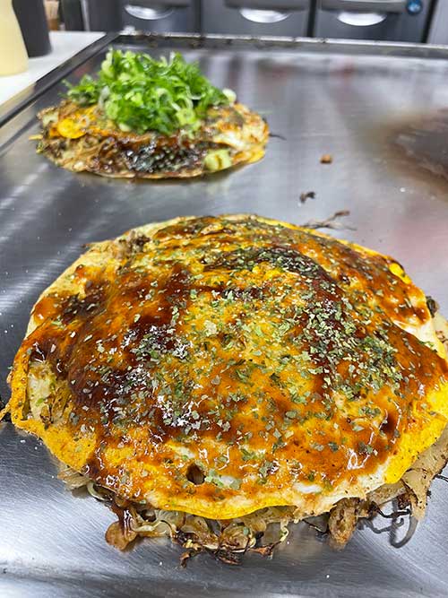 こちらも気になりつつやっと足を踏み入れたお店。その名からも分かるように広島お好み焼きです。私はノーマルのものを。夫はネギトッピングとかにしてたかな。