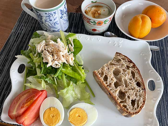 昨日購入したブリコラージュブレッドで朝ごはん。