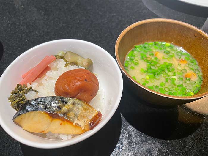 パンもあるのはわかっていましたが、上記のプレートでサバの塩焼きを取ってしまったため、和風にしました。