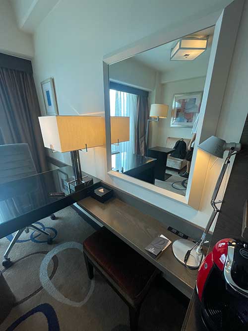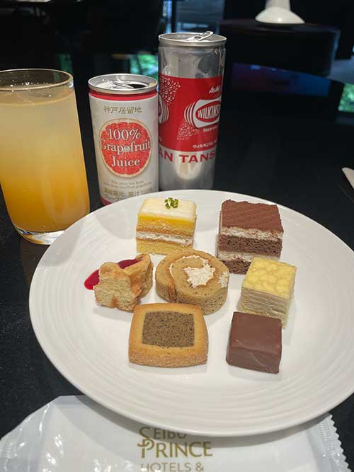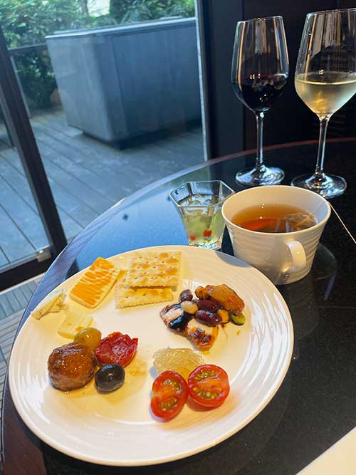 今回はクラブフロアに宿泊なので、クラブラウンジが利用できます。ありがたい。基本的に洋風のおやつなどがいただけます。ティータイムでもアルコールが楽しめて、夫は早速ホクホクしていました。