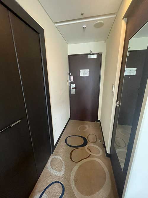 入り口付近にクローゼットとバスルームのドア。