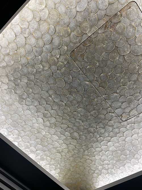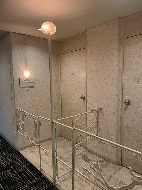 エレベーターのドアや、内部の天井が貝で飾られています。独特なこの装飾も無くなってしまうのか…。