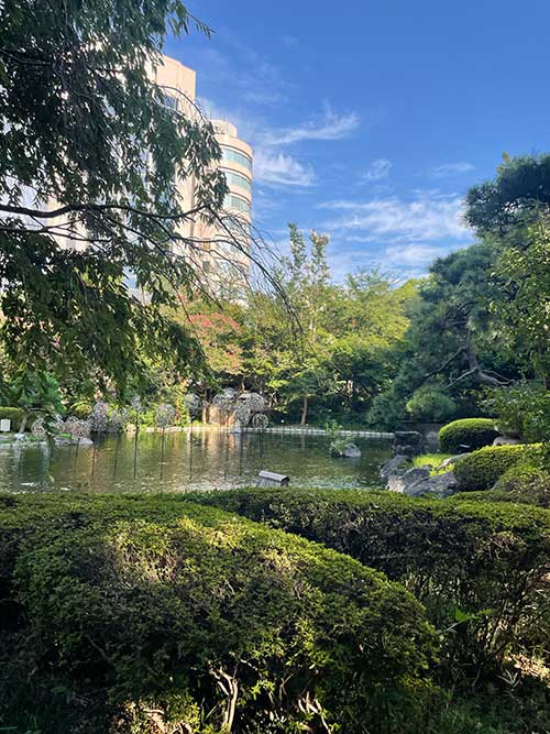 日本庭園を通り、グランドプリンスホテル高輪へ向かいます。