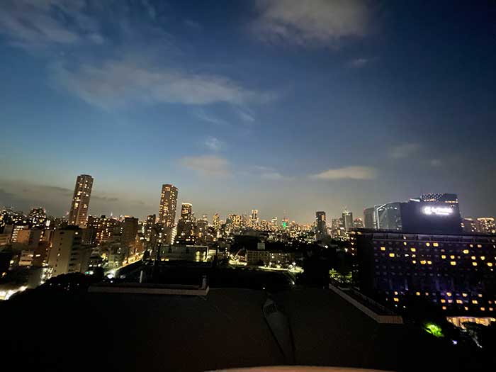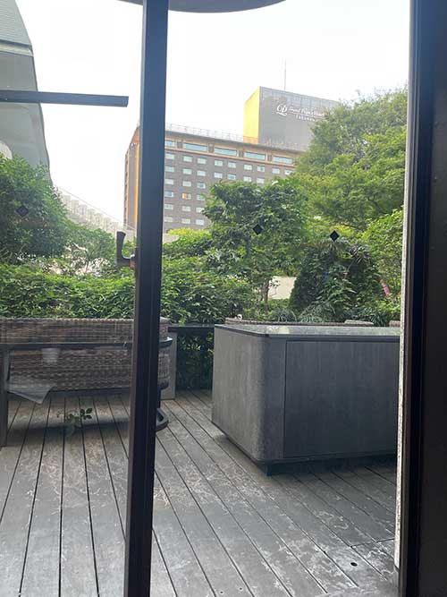 スープも美味しかったな。テラスの向こうは、高輪。ゆっくり楽しみつつ、満腹なので部屋に戻ります。