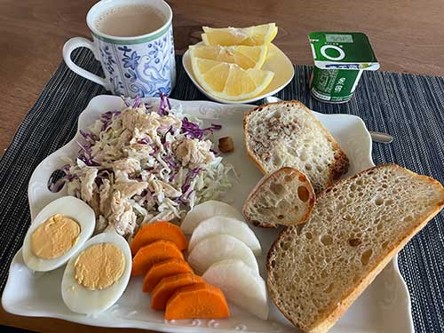 パンはあれこれ取り合わせ。大きなものはこの後マヨネーズとパルメザンチーズでトーストにしました。