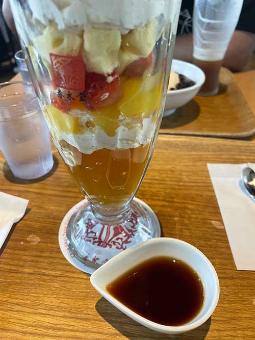 私は冒頭の写真の台湾パフェ 紅茶アフォガード1,100円にしました。台湾スイーツ全部盛り+果物みたいな構成で欲張りな私に嬉しいメニューです。