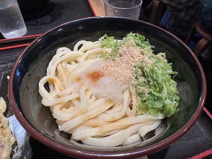 夫は暑いこともあり、たぬき温玉ぶっかけうどん900円。