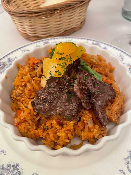 そして冒頭のウズベクピラフ。クミンの香りもよく、牛肉も柔らかくて美味しい。変わらない一皿にホッとします。