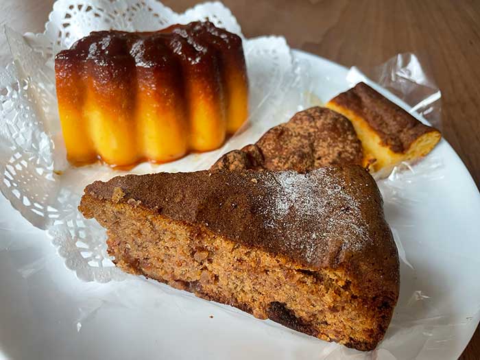 手前はフランシスコ修道院のアーモンドケーキ690円。名前も材料もそそられる内容で、ストライクの味です。
