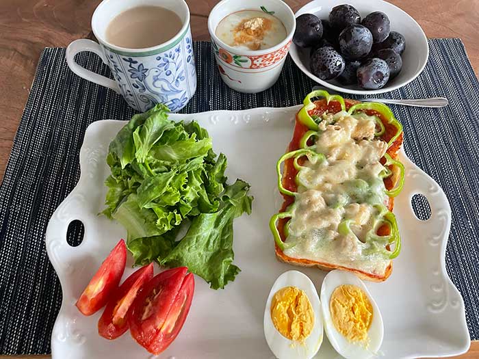 ピザトースト 2025.09.16 前日買ったリトルマーメイドのイギリスパンでピザトースト。バルサミコ酢入りのケチャップがあったのでそれを塗り、ストックしている鶏ささみの酒蒸しやピーマンを乗せて、とろけるチーズで。パンの土台がサクサクしているので、好みの食感になりました。