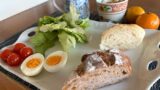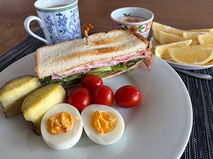 多分リトルマーメイドのイギリスパンだったと思いますが、トーストしてハムやスライスチーズ、レタスをサンドしました。