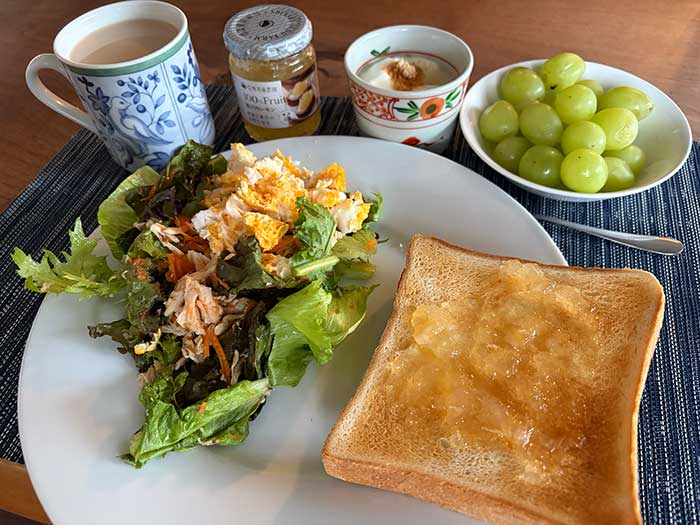 [100%フルーツ]瀬戸内レモンのジャムを購入し、トーストにたっぷり塗っての朝ごはん。爽やかな甘さで朝にぴったりでした。