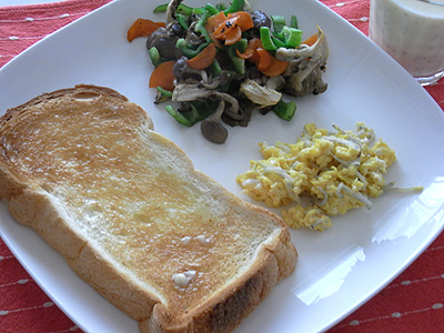 先日の朝食では、久しぶりにバタートーストにしてみました。