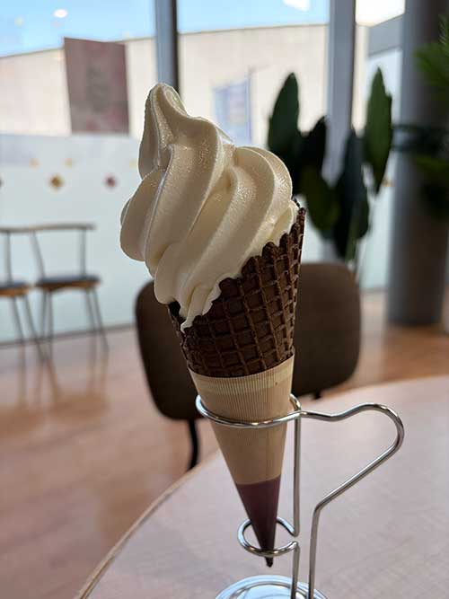 見学の後は、ミルクスタンドGAMADASUで島原牛乳を使ったミルクソフトクリーム420円。