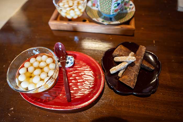 夫は飲みものは不要とのことで、かんざらし単品600円くらい?と島原駄菓子330円の組み合わせにしました。こういう駄菓子も懐かしく美味しい。