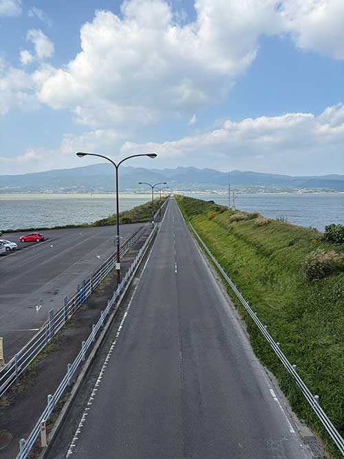 後は長崎空港へ向かいます。旅行を計画している際に、諫早湾を横切る橋が気になりここを通過することに。真ん中あたりに展望所があるようなので、そこで休憩をとりました。