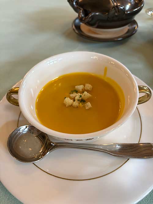 パンはクロワッサンとパンドミ。バターと蜂蜜と自家製ジャムがあり、嬉しい忙しさ。雲仙野菜のスープは、かぼちゃのポタージュでした。この並びだけでも立派な上質な朝ごはんです。