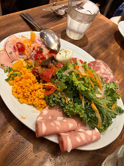 金曜の夜は流石に予約がないと満席のところが多く、こちらも90分制ということで、飲み物片手にサクッと前菜盛り合わせとピッツア1枚で晩御飯。