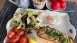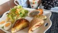 食パンは近江屋洋菓子店のもの。トーストしてジャムを塗りました。