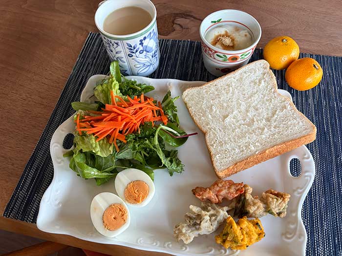 引き続き小田原の蒲鉾の朝ご飯が続いています。右下はカボチャで、本当にカボチャの甘さが伝わります。珍しいし美味しいいろんなかまぼこを楽しんでいます。