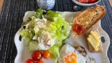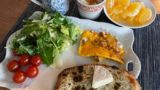 チーズのフランスパンとペッパーハムとチェダーチーズのフランスパンで朝ごはん。イギリスにはこう言うパンはなさそうだけど、それはそれとしてローカライズされたパンのラインナップってことかな。リベイクしてチーズも熱々にしていただきました。