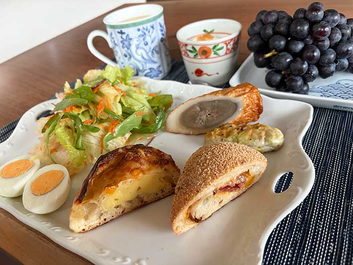 小田原の蒲鉾のお土産も朝ごはんに動物性タンパク質として並べています。こちらもしっかり温め直しております。ごぼうがしっかりとした存在感を放っていて、美味しかったです。