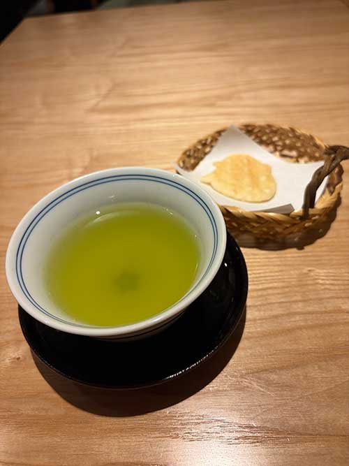 近くに立ち寄ったので様子を伺ってみると、すぐに入れました。嬉しい。まずはお茶と共にお煎餅が出てきたので人ごこち。