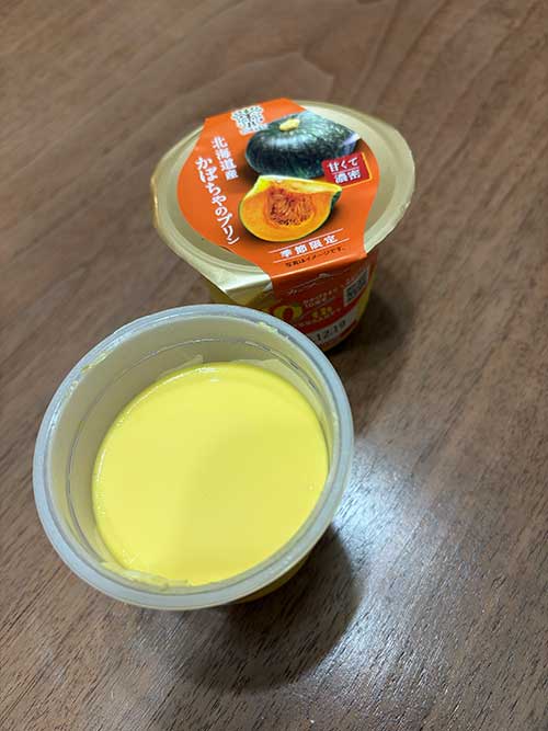 八百屋さんでなぜか売られていてジャケ買いした北海道産かぼちゃプリン。