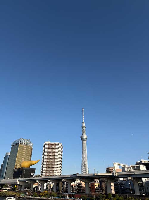 浅草までぶらぶら歩いてお約束のアサヒビール越しのスカイツリー。