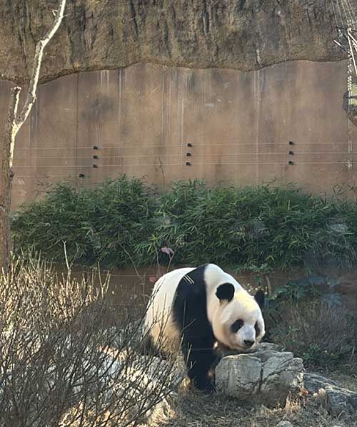 折角なのでパンダを見に行くべくよくわからないまま人の流れに沿って西園のパンダのもりへ。シャオシャオの方へなんとなく並び40分待ちとのこと。実際には10時以降に準備ができたとのことでそこから列が進み出しました。時間を区切って何回かに分けて観覧できる仕組みになっていました。