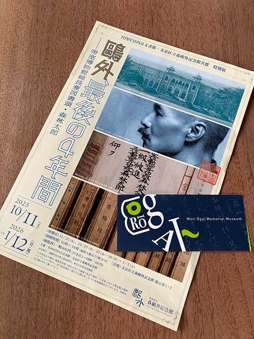 昨日は「ぐるっとパス」で森鷗外記念館に行って来ました。特別展「鴎外、最後の4年間―帝室博物館総長兼図書頭・森林太郎」が開催中でした。