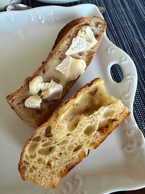 バゲットはトーストしてカマンベールチーズと共に。フォカッチャも一緒にリベイクしています。