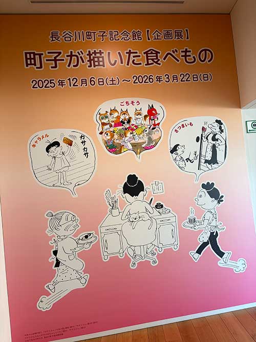 この時期は「町子が描いた食べもの」という企画展が開催されていました。興味津々だったからラッキーです。焼き芋がこんなにも登場したかと全て描き出したボードにも感動です。