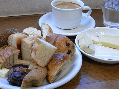 パン食べ放題ランチにコーヒーとチーズ食べ放題もつけて、700円か800円かそれくらい。