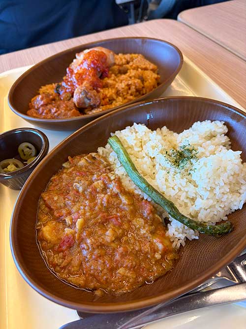 手前がビーフカランガ、奥がジョロフライスでどちらも1320円。珍しいメニューを楽しめました。
