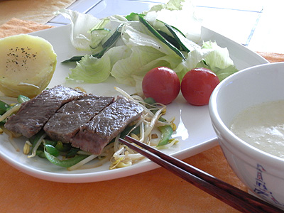 今朝は、但馬牛のステーキにしてみました。
