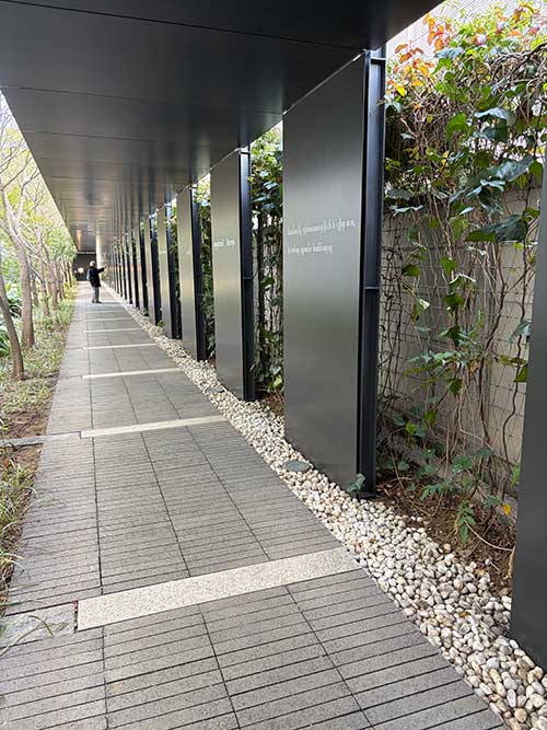 庭の脇の通路もスタイリッシュ。この先にあるレストランにもいつか行ってみたいです。