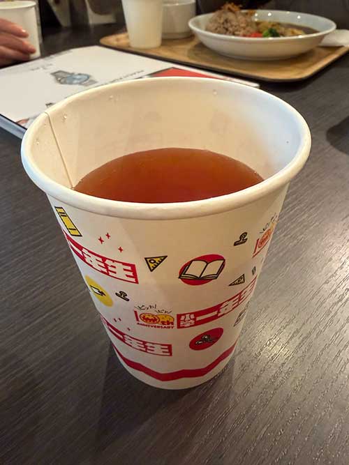 各自カウンターで注文し、私はルイボスティー360円。一人は今夜のブライアン・アダムスのライブに備えて早めの晩御飯です。
