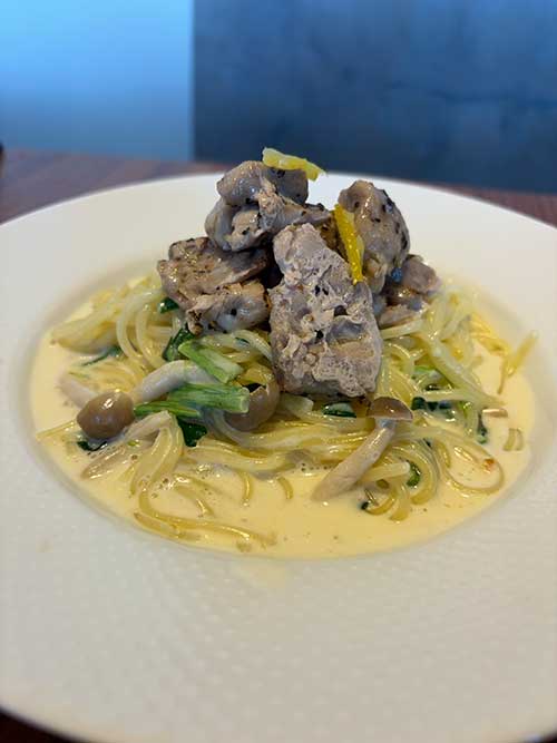 冒頭は岩手県産鶏もも肉とほうれん草の柚子胡椒クリーム、食べたことのない組み合わせでとても美味しかったです。