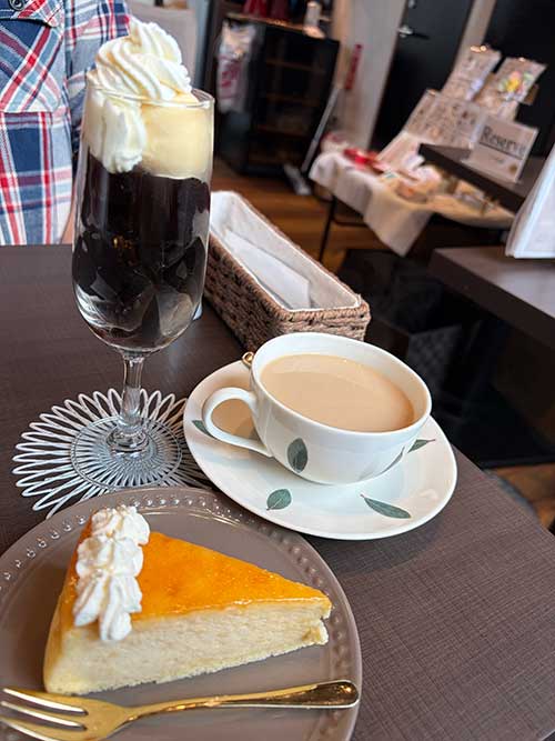 私はカフェオレとベイクドチーズケーキでドリンク付きセット880円にカフェオレはプラス20円で900円。